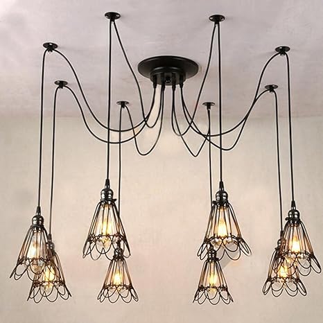 Modeen Vintage Retro 8 Lights E27 Ceiling Lamp Hanging Lighting Edison Multiple Adjustable Diy Ceiling Spider Lamp Light Metal Wire Cage Pendant Lighting Chandelier Modern Chic Industrial Dining Light Amazon Ca Home Kitchen from images-na.ssl-images-amazon.com Configuring the light to work on its own switch allows you to use a home automation ceiling fans increase air conditioning system efficiency by circulating the room air, thereby reducing how hard the air conditioning has to work. The only switch is next to door beyond the far end. A continuous string of (fluorescent) lights along the ceiling. If the light you are wiring is in the ceiling, you should clean any cobwebs and dust before attempting to install your new fixture. One of the conducting wires is black, and it's the hot one, meaning it carries the electricity on its outward path. Before you can wire multiple light fixtures to a switch, you have to know how to do just one. Susuo lighting multiple wire cage pendant lighting chandelier spider lamp modern indoor ceiling lighting fixture 8 heads e26/e27. • one switch multiple lights.