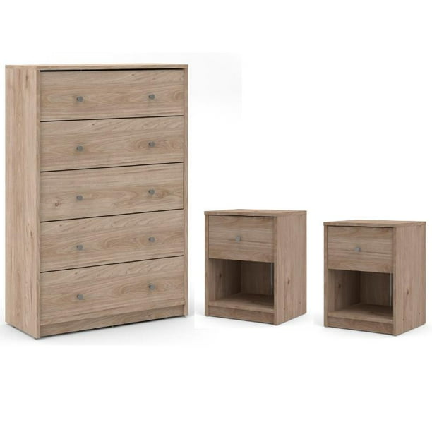 Home square 4 piece bedroom set with 6 drawer double dresser, 5 drawer chest dresser, two nightstands in jackson hickory.